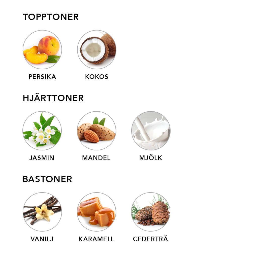 Härlig mild doft av söt vanilj med inslag av kokos, sprider sig försiktigt i rummet.